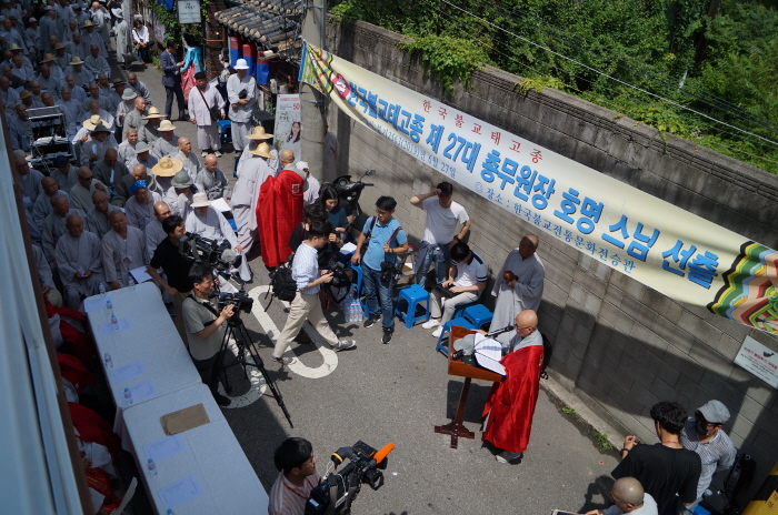 Çѱ¹ºÒ±³Å°íÁ¾ Á¦27´ë Ãѹ«¿øÀåÀ¸·Î ´ç¼±µÈ È£¸í ½º´ÔÀÌ Å°íÁ¾ ¼±°Å°ü¸®À§¿øÈ¸·ÎºÎÅÍ ´ç¼±ÁõÀ» ¹Þ¾Ò´Ù. ŰíÁ¾ ¼±°Å±ÔÁ¤¿¡ µû¶ó ´Üµ¶ ÀÔÈĺ¸ÇÑ È£¸í ½º´ÔÀº Àڰݽɻ縦 ÅëÇØ ¹«ÅõÇ¥ ´ç¼±ÀÌ È®Á¤µÇ¾î À̳¯ ´ç¼±ÁõÀ» ¹Þ°í 27´ë Ãѹ«¿øÀå Àӱ⸦ ½ÃÀÛÇß´Ù.