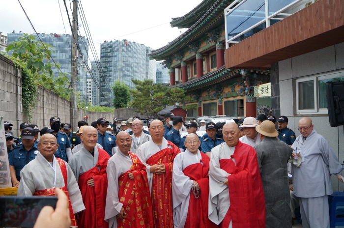 Æí¹é¿î ½º´Ô ÃøÀº ´çÃÊ È£¸í ½º´Ô ´ç¼±À» ÀÎÁ¤ÇÒ ¼ö ¾øÀ½À» ¹àÇô ¿Â »óÅ·ΠÀ̳¯ Ãѹ«¿øÀ» Á¡°ÅÇϰí ÀÔ±¸¸¦ Æó¼âÇÏ¿© È£¸í ½º´ÔÀº Ãѹ«¿ø ¾Õ À̸鵵·Î¿¡¼ ´ç¼±Áõ ±³ºÎ½ÄÀ» ¿°Ô µÈ °ÍÀÌ´Ù. À̸鵵·ÎÀ» ³ª´©´Â Â÷´Ü¸·À» »çÀÌ¿¡ µÎ°í ¸¸¾àÀÇ »çÅ¿¡ ´ëºñÇÏ¿© °æÂû ÀηÂÀÌ ÁöÄѺ¸´Â °¡¿îµ¥ ÁøÇàµÈ À̳¯ ±³ºÎ½Ä¿¡´Â Áß¾ÓÁ¾È¸ÀÇÀå µµ±¤ ½º´Ô, Áß¾Ó¼±°Å°ü¸®À§¿øÀå ¿ùºÀ ½º´Ô, È£¹ý¿øÀå Áö¿ø ½º´Ô, ÇØµ¿ºÒ±³´ëÇÐÀå ´ëÀº ½º´Ô µî Á¾´Ü ÀÓ¿ø ¹× Á¾µµ, Àü¹ý´Ü µî 100¿©¸íÀÌ Âü¼®Çß´Ù.