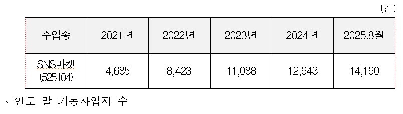 ¡à2021³â∼2025.6.±îÁö SNS¸¶ÄÏ »ç¾÷ÀÚÀÇ Á¤¸®Áßü³³¾× ÇöȲ