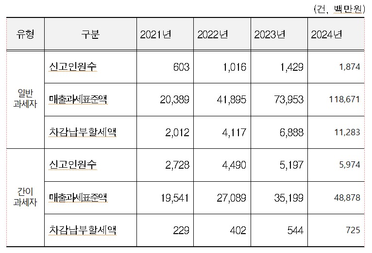 ¡à2021∼2024³â ‘SNS¸¶ÄÏ(525104)’À» ÁÖ¾÷Á¾À¸·Î µî·ÏÇÑ »ç¾÷ÀÚ À¯Çü(ÀϹÝ‧°£ÀÌ)º° ºÎ°¡°¡Ä¡¼¼ ½Å°íÇöȲ