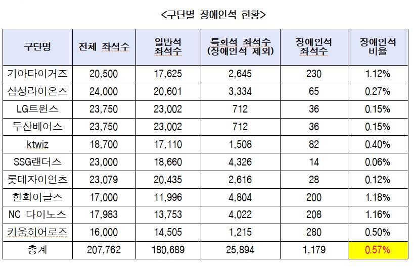 ±¹È¸ ¹®ÈüÀ°°ü±¤À§¿øÈ¸ ¼Ò¼Ó ¹ÎÇü¹è ÀÇ¿ø(´õºÒ¾î¹ÎÁÖ´ç, ±¤ÁÖ ±¤»êÀ»)ÀÌ ¹®ÈüÀ°°ü±¤ºÎ·ÎºÎÅÍ Á¦Ãâ¹ÞÀº ÀÚ·á¿¡ µû¸£¸é, ÇÁ·Î¾ß±¸ÀåÀÇ Àå¾ÖÀμ® ºñÀ²Àº Àüü Á¼®ÀÇ 0.57%¿¡ ºÒ°úÇß´Ù.
