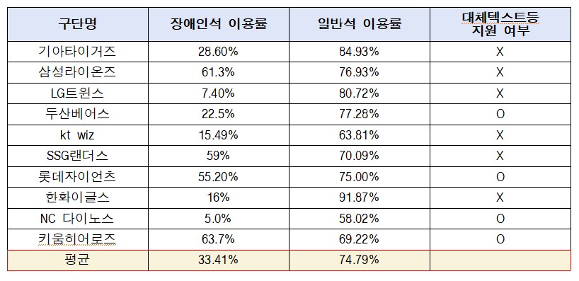 ¿¹¸Å Á¢±Ù¼º °ü·Ã ¹®Á¦µµ ½É°¢ÇÏ´Ù. 10°³ ±¸´ÜÀº ´ëü·Î ¿Â¶óÀÎ ¿¹¸Å¸¸ Çã¿ëÇϰí ÀÖÀ¸¸é¼µµ, ½Ã°¢Àå¾ÖÀÎÀ» À§ÇÑ ´ëÃ¼ÅØ½ºÆ®°¡ Áö¿øµÇ´Â ±¸´ÜÀº 4°÷»ÓÀÌ´Ù. ÀÌ·Î ÀÎÇØ Àå¾ÖÀμ® ¿¹¸ÅÀ²Àº 2024³â ±âÁØ Æò±Õ 33.41%·Î, ÀϹݼ®(74.79%)ÀÇ Àý¹Ý¿¡µµ ¹ÌÄ¡Áö ¸øÇß´Ù.
