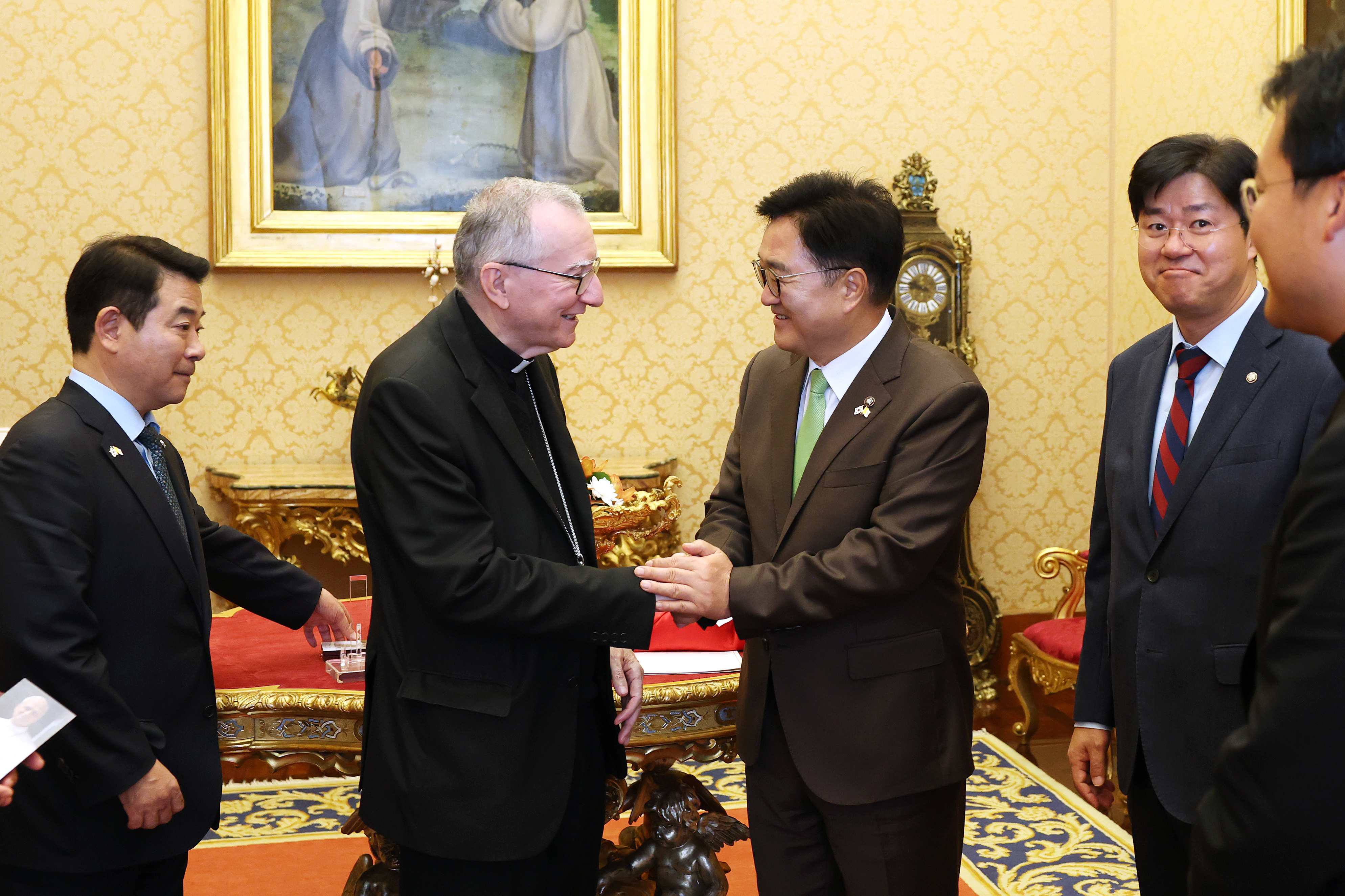 ¿ì ÀÇÀåÀº ÆÄ·Ñ¸° ±¹¹«¿øÀå¿¡°Ô ·¹¿À 14¼¼ ±³È²ÀÇ ¹æºÏÀ» °ø½Ä ¿äûÇÏ´Â ¼ÇÑÀ» Àü´ÞÇϸç "2027³â ¼¿ï¿¡¼ °³ÃÖµÉ °¡Å縯 ¼¼°èû³â´ëȸ(World Youth Day)¸¦ °è±â·Î ±³È²´ÔÀÇ ¹æºÏÀÌ ½ÇÇöµÈ´Ù¸é, ÀÌ´Â ¼¼°è ÆòÈ¿Í Çѹݵµ Æòȸ¦ À§ÇÑ ¸Å¿ì Å« »ó¡ÀÌ µÉ °Í"À̶ó¸ç "Çѹݵµ ÆòÈÀÇ »õ·Î¿î ÀüȯÁ¡ÀÌ µÉ °Í"À̶ó°í °Á¶Çß´Ù.