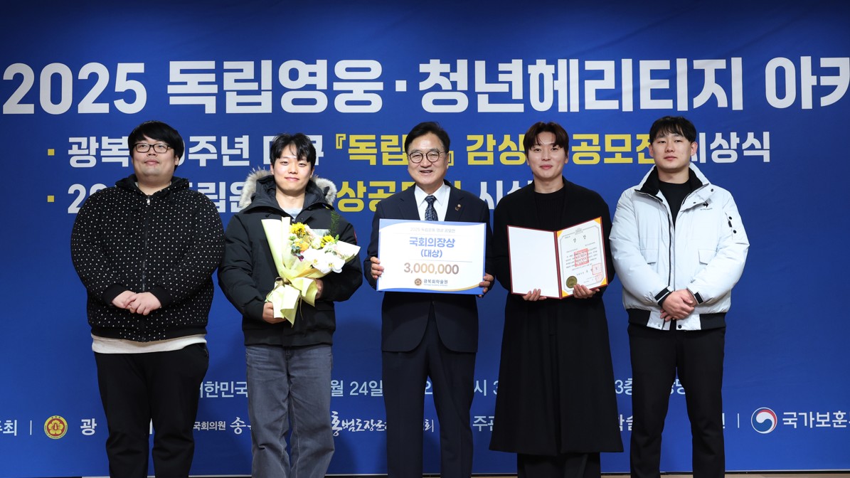 ¡ã¿ì¿ø½Ä ±¹È¸ÀÇÀåÀÌ 24ÀÏ(¼ö) ¿ÀÀü ±¤º¹È¸°ü¿¡¼ ¿¸° '±¤º¹È¸Çмú¿ø 2025 ¾ÆÄ«µ¥¹Ì ¼ö·á½Ä ¹× °ø¸ðÀü ½Ã»ó½Ä'¿¡ Âü¼®ÇØ ¼ö»óÀÚµé°ú ±â³äÃÔ¿µÀ» Çϰí ÀÖ´Ù.(»çÁø=±¹È¸»ç¹«Ã³ »çÁøÆÀ)