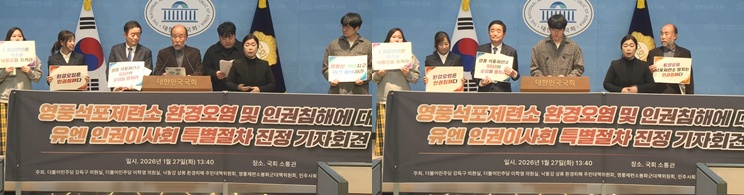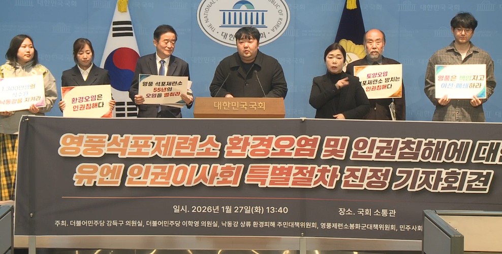 ³«µ¿° »ó·ù ȯ°æÇÇÇØ ÁֹδëÃ¥À§, ¿µÇ³Á¦·Ã¼Ò ºÀȱº ÁֹδëÃ¥À§, ¹ÎÁÖ»çȸ¸¦ À§ÇÑ º¯È£»ç¸ðÀÓ(¹Îº¯) ȯ°æº¸°ÇÀ§¿øÈ¸´Â 27ÀÏ(È) ¿ÀÈÄ ±¹È¸ ¼ÒÅë°ü¿¡¼ ±âÀÚȸ°ßÀ» ¿°í, ¿µÇ³¼®Æ÷Á¦·Ã¼ÒÀÇ È¯°æ¿À¿° ¹× ÀαÇÄ§ÇØ »ç¾ÈÀ» À¯¿£ ÀαÇÀÌ»çȸ Ưº°ÀýÂ÷¿¡ ȸºÎÇß´Ù°í ¹àÇû´Ù.