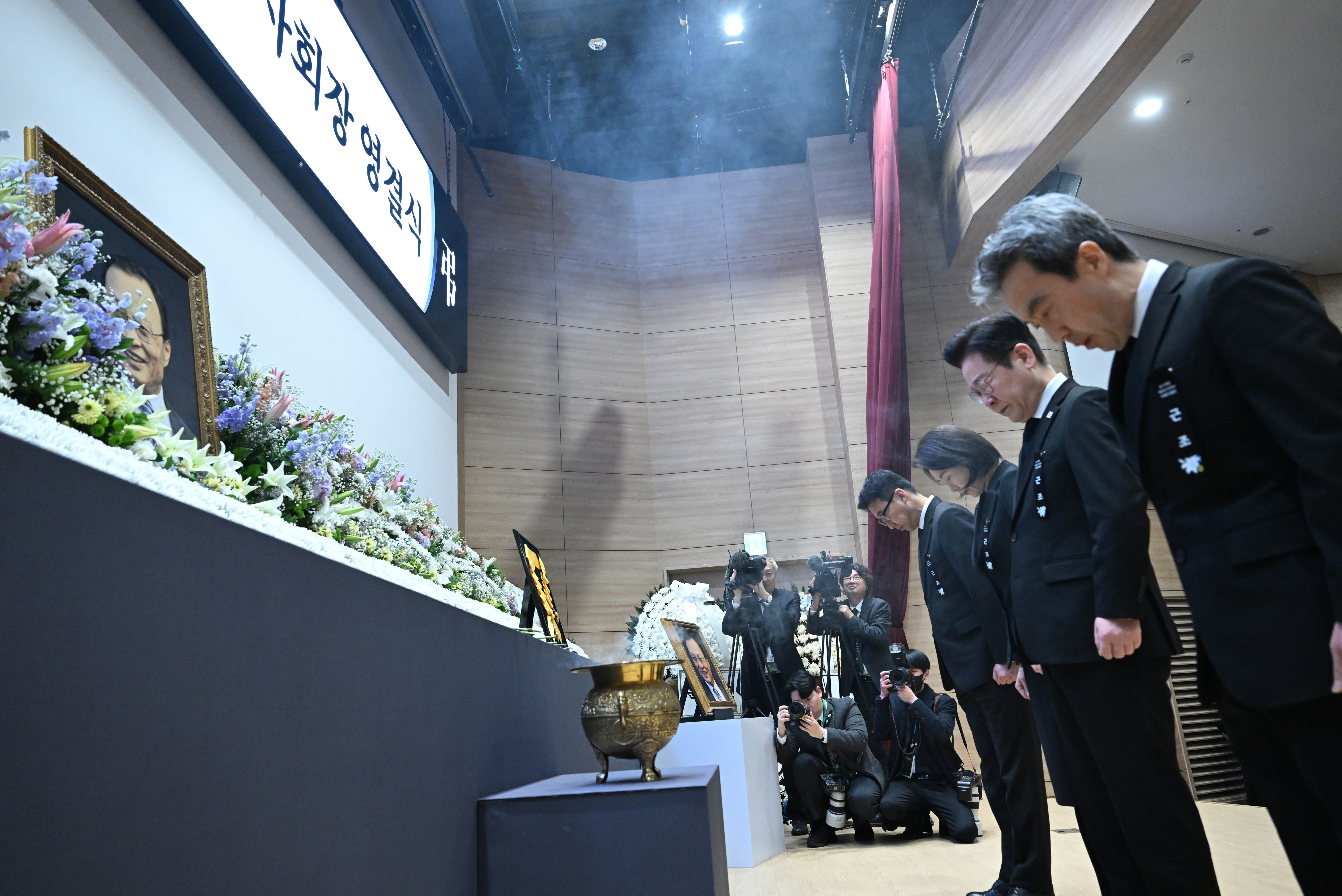 Á¤ ´ëÇ¥´Â ´«¹°À» ¾Ö½á ÂüÀ¸¸ç "¿Ã¹Ù¸¥ Á¤Ä¡ÀÇ Ç¥»óÀ̴̼ø ÀÌ Àü ÃѸ®´Ô°ú µ¿½Ã´ë¿¡ ÇÔ²²Çß´Ù´Â °ÍÀÌ ÀÚ¶û½º·´´Ù. Âü ¾öÇϽÃÁö¸¸ µû¶æÇß´ø ºÐ, ¹ÎÁÖ´çÀÇ °Å¸ñ, ÀÌ Àü ÃѸ®´ÔÀ» ¿À·¡¿À·¡ ±â¾ïÇϰڴÙ"°í ¾ÖµµÇß´Ù.