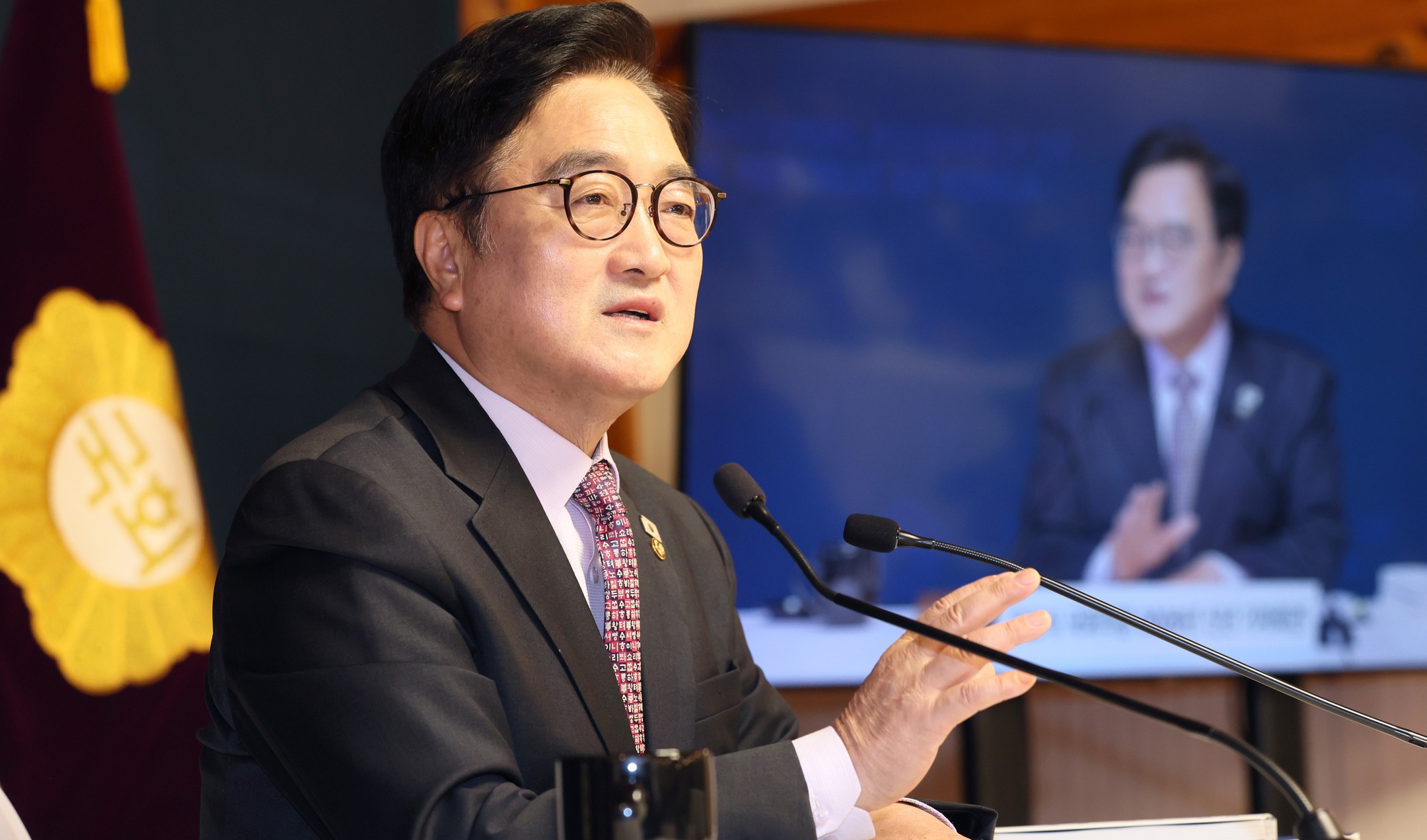 ¡ã¿ì¿ø½Ä ±¹È¸ÀÇÀåÀÌ 5ÀÏ(¸ñ) ¿ÀÀü ±¹È¸ »ç¶ûÀç¿¡¼ ¿¸° 2026³â ½Å³â ±âÀÚȸ°ß¿¡¼ ¹ß¾ðÇϰí ÀÖ´Ù.(»çÁø=±¹È¸»ç¹«Ã³ »çÁøÆÀ)