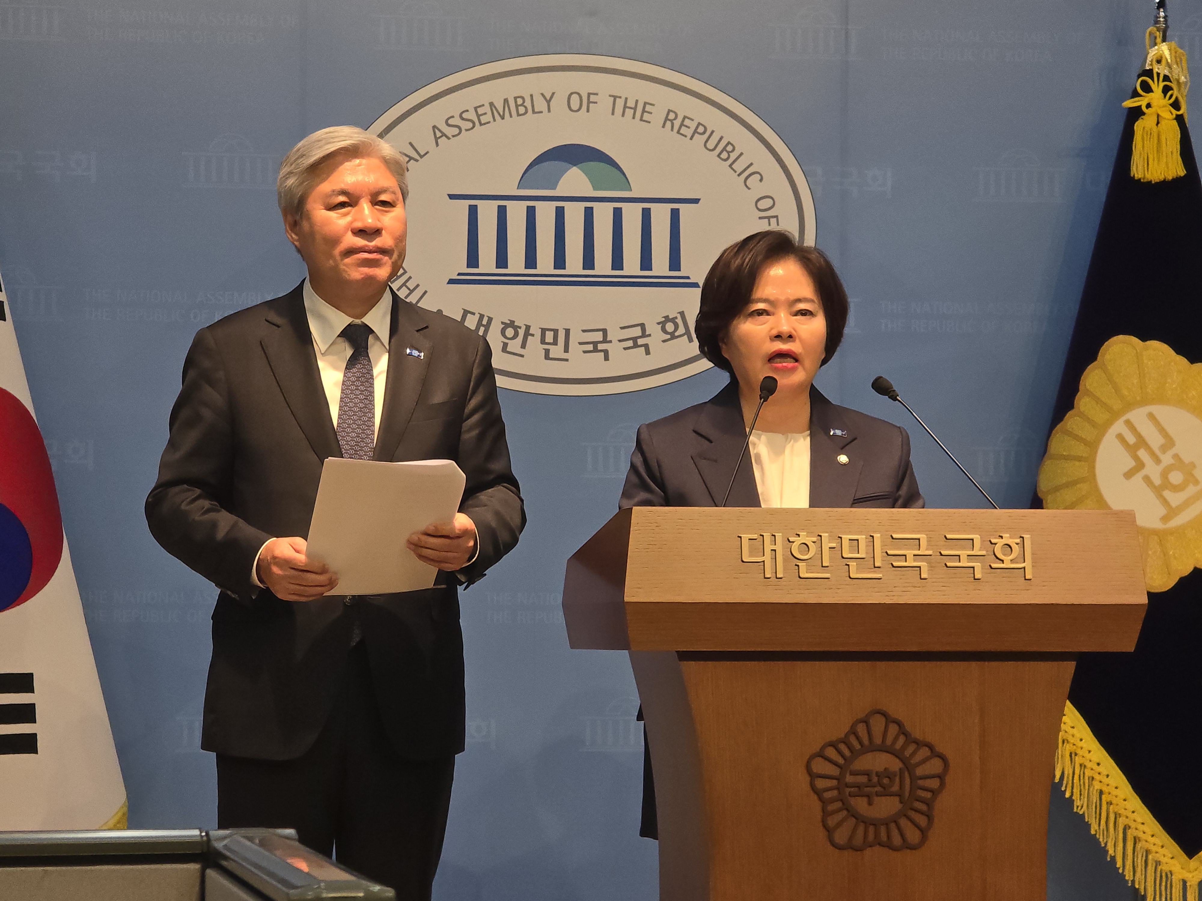 24ÀÏ ±¹È¸¼ÒÅë°ü ±âÀÚȸ°ßÀå¿¡¼ Á¶±¹Çõ½Å´ç ¼¿ÕÁø ÀÇ¿ø°ú ÀåÃá»ýÀÇ¿øÀÌ ÇàÁ¤ÅëÇÕÀÇ ¹ÎÁÖÀû È®º¸¿¡ °üÇÑ ±âÀÚȸ°ßÀ» °¡Á³´Ù.