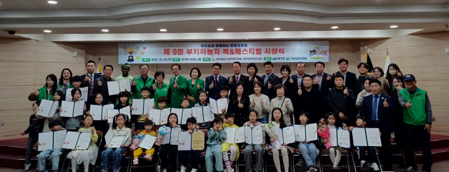 (ºÒž´º½º=¼ÛÇàÀÓ±âÀÚ) »õ¸¶À»¹®°í ´ë±¸ºÏ±¸ÁöºÎ(ȸÀå Á¤¼±ÁÖ)´Â 10¿ù 30ÀÏ(¸ñ) ºÏ±¸Ã» 4Ãþ ´ëȸÀǽǿ¡¼ ¼ö»óÀÚ, Çкθð, ³»ºó µî 100¿© ¸íÀÌ Âü¼®ÇÑ °¡¿îµ¥‘Á¦9ȸ ºÎŰ¾ß³îÀÚ ºÏ¾ØÆä½ºÆ¼¹ú ½Ã»ó½Ä’À» °³ÃÖÇÏ¿´´Ù.