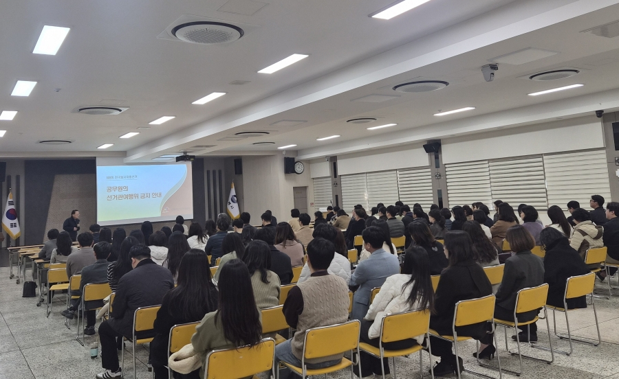 (ºÒž´º½º=¼ÛÇàÀÓ±âÀÚ)±èÇØ½Ã´Â Á¦9ȸ Àü±¹µ¿½ÃÁö¹æ¼±°Å¸¦ ¾ÕµÎ°í °øÁ÷ÀÚÀÇ Á¤Ä¡Àû Á߸³À» È®º¸Çϱâ À§ÇØ ¼Ò¼Ó Á÷¿øÀ» ´ë»óÀ¸·Î °ø¹«¿ø ÇàÀ§±âÁØ ±³À°À» ½Ç½ÃÇß´Ù.