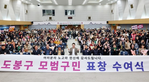 (ºÒž´º½º=Â÷º¹¿ø±âÀÚ) ¼¿ï µµºÀ±¸°¡ Áö¿ª»çȸ ¹ßÀü¿¡ ±â¿©ÇÑ ±¸¹ÎµéÀ» °Ý·ÁÇÏ´Â ÀÚ¸®¸¦ ¸¶·ÃÇß´Ù.