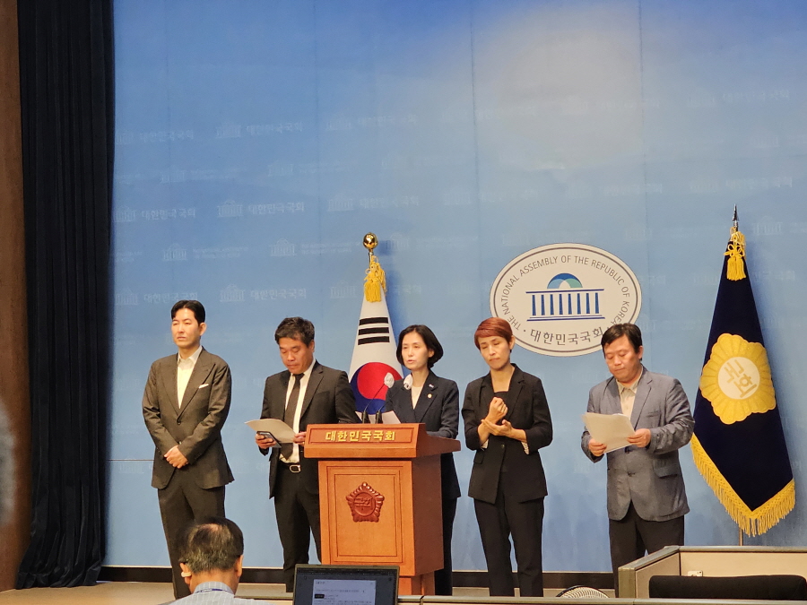 4ÀÏ ±¹È¸ ¼ÒÅë°ü ±âÀÚȸ°ß½Ç¿¡¼ ´õºÒ¾î¹ÎÁÖ´ç ÃÖ´ëÈ£