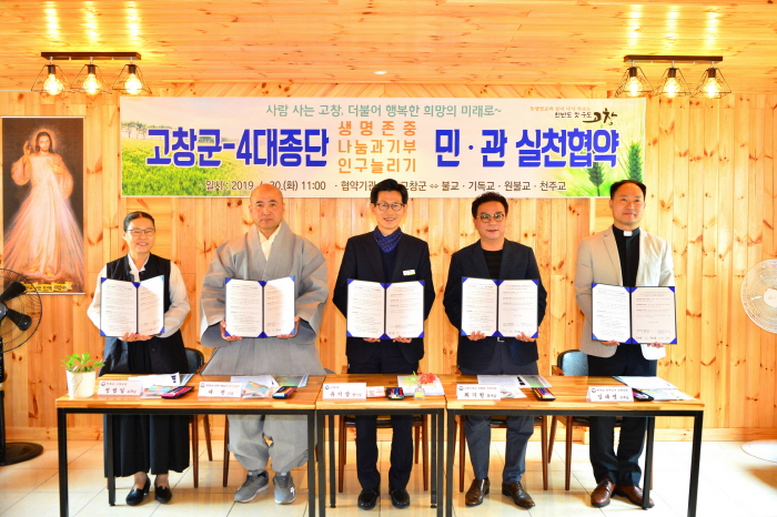 Áö³ 4¿ù 30ÀÏ À¯±â»ó °íⱺ¼ö¿Í °ü³» 4´ë Á¾´Ü ´ëÇ¥µéÀÌ °íⱺ õÁÖ±³¸¸³²ÀÇ Áý¿¡ ¸ð¿© ‘»ý¸íÁ¸Áß, ³ª´®°ú ±âºÎ, Àα¸´Ã¸®±â’ ¹Î‧°ü ½ÇõÇù¾à(1È£)À» ÁøÇàÇß´Ù. À̳¯ Çù¾à½Ä¿¡´Â ¼±¿î»ç ºÎÁÖÁö ´ë¼± ½º´Ô, ´ë»ê ´öõ±³È¸ ÃÖ±â¿ø ¸ñ»ç, °í⼺´ç ±è´ë¿µ ½ÅºÎ, ¿øºÒ±³ °íâ±³´ç Á¤¹ýÀÏ ±³¹« µîÀÌ Âü¼®Çß´Ù.