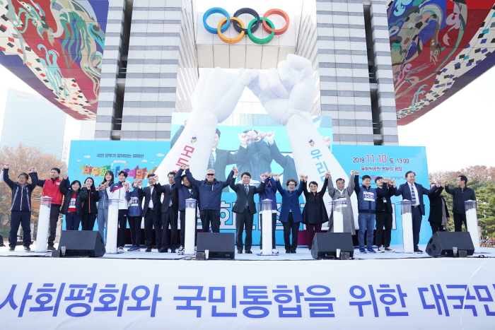 (»ç)Çѱ¹»çȸÆòÈÇùÀÇȸ(ÀÌ»çÀå À̱âÈï)´Â 11¿ù 10ÀÏ ¼ÛÆÄ ¿Ã¸²ÇȰø¿ø ÆòÈÀÇ ±¤Àå¿¡¼ Çѹݵµ ÆòÈ´ÙÁü °È±âÃàÁ¦ ‘¸ðµÎÇÔ²² ¿ì¸®´ä°Ô’¸¦ ¼ºÈ²¸®¿¡ °³ÃÖÇß´Ù. ‘´ä°Ô »ì°Ú½À´Ï´Ù’ ¿îµ¿ÀÇ ÀÏȯÀ¸·Î ¸¶·ÃµÈ Çà»ç´Â °¢ Á÷´É´ëÇ¥, 7´ëÁ¾´Ü(ºÒ±³, ¿øºÒ±³, õÁÖ±³, °³½Å±³, À¯±³, õµµ±³, Çѱ¹¹ÎÁ·Á¾±³ÇùÀÇȸ)Æò½Åµµ ´ëÇ¥ ¹× ½Åµµµé°ú ½Ã¹ÎµéÀÌ ÇÔ²² Âü¿©Çß´Ù.
