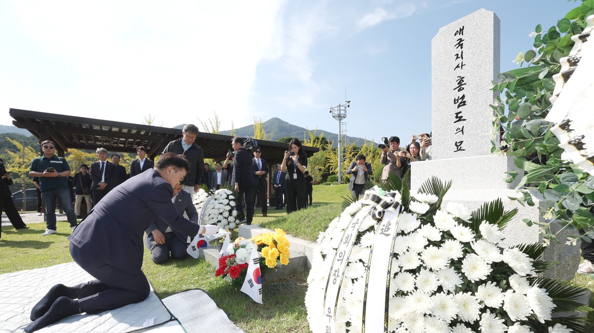 ¿ì ÀÇÀåÀº "1894³âºÎÅÍ 1945³â±îÁö 51³â°£ ÇÑ ¹øµµ ÃÑÀ» ³»·Á³õÁö ¾Ê°í ÀϺ»°ú ´ç´çÈ÷ ¸Â¼ ½Î¿ü´ø ¿ì¸® µ¶¸³ÀüÀïÀÇ ÀÚ¶û½º·± ¿ª»ç¸¦ Á¦´ë·Î ¹àÇô¾ß ÇÑ´Ù"¸ç "È«¹üµµÀ屺ÀÇ Á¤½ÅÀ» ±â¸®´Â °ÍÀÌ °ð ¿ì¸®³ª¶óÀÇ Á¤Ã¼¼ºÀ» ¹Ù·Î ¼¼¿ì´Â °ÍÀ¸·Î, ¿ª»çÀÇ ±â·ÏÀ¸·Î ³²±â±â À§ÇØ ÃÖ¼±À» ´ÙÇϰڴÙ"°í °Á¶Çß´Ù.
