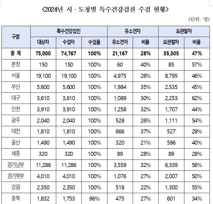 - Áö³ÇØ Æ¯¼ö°Ç°°ËÁø ¼ö°ËÀÚ 7¸¸ 5õ¿© ¸í Áß 28%´Â À¯¼Ò°ßÀÚ, 47%´Â ¿ä°üÂûÀÚ