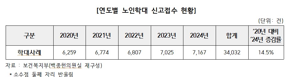 (ºÒž´º½º=Â÷º¹¿ø±âÀÚ) ±¹È¸ º¸°Çº¹ÁöÀ§¿øÈ¸ ¹éÁ¾Çå ±¹È¸ÀÇ¿ø(±¹¹ÎÀÇÈû, ºÎ»ê ±ÝÁ¤±¸)ÀÌ º¸°Çº¹ÁöºÎ¿¡¼ ¹ÞÀº ÀڷḦ ºÐ¼®ÇÑ °á°ú, ÃÖ±Ù 5³â°£ ³ëÀÎÇÐ´ë »ç·Ê°¡ 2024³â 7,167°ÇÀ¸·Î Áõ°¡ÇßÀ¸¸ç, ÀçÇдëÀÇ °æ¿ì ÇÇÇØ ³ëÀÎ 9¸í Áß 1¸í²Ã·Î Çд밡 ¹Ýº¹µÇ°í ÀÖ´Â °ÍÀ¸·Î ¹àÇôÁ³´Ù.