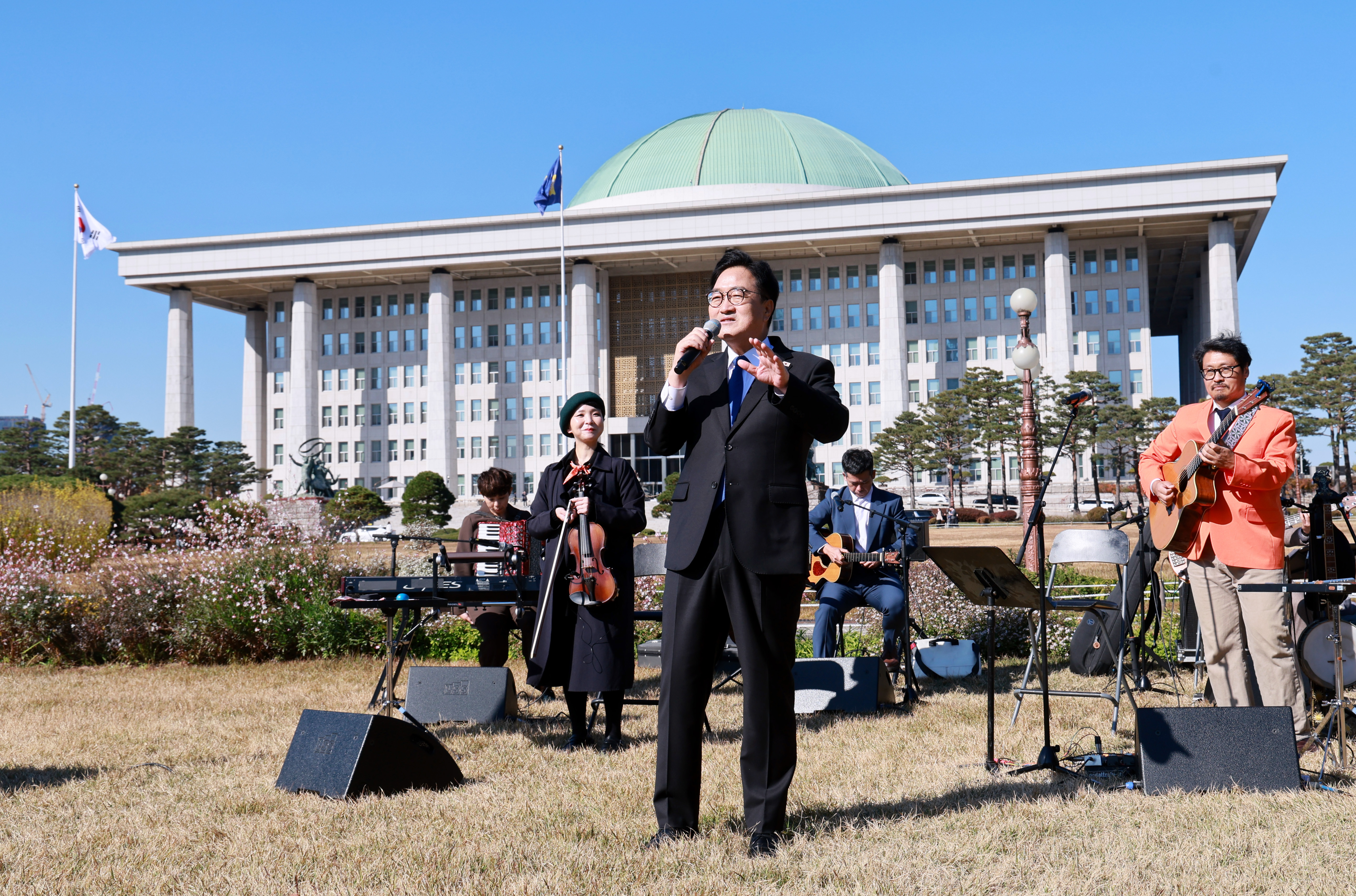 ¿ì¿ø½Ä ±¹È¸ÀÇÀåÀº 14ÀÏ ±¹È¸Áß¾ÓÀܵð±¤Àå¿¡¼ ¿¸° ±¹È¸ °³¹æ Á¤¿ÀÀÇ ÄܼƮ '°¡À»ÀÌ ÇǾú³×'¿¡ Âü¼®Çß´Ù. ±¹È¸¿¡¼ óÀ½ ¿¸° À̹ø ÄܼƮ¿¡´Â µå¶ó¸¶ <±¸¸£¹Ì ±×¸° ´Þºû> µî ´Ù¼öÀÇ OST¸¦ ÀÛ°îÇÑ 'µÎ¹øÂ°´Þ'ÀÌ ÇÔ²²ÇØ °ø¿¬À» ÆîÃÆ´Ù. ¿ì ÀÇÀåÀº ÀÌ ÀÚ¸®¿¡¼ "Áö³ ±¤º¹Àý Àü¾ßÁ¦, µ¾ÀÚ¸® ¿µÈÁ¦, ÀÔ¹ý¹Ú¶÷ȸó·³ ±¹È¸¸¦ °³¹æÇØ ±¹¹Î°ú ÇÔ²²ÇÏ´Â Çà»ç¸¦ ¸¸µé¾î³ª°¡°í ÀÖ´Ù"¸ç "¾ÕÀ¸·Îµµ ±¹È¸¿Í ¹ÎÁÖÁÖÀǸ¦ ÁöÄÑÁØ ±¹¹Îµé²² ¿¸° ±¹È¸°¡ µÉ ¼ö ÀÖµµ·Ï ³ë·ÂÇϰڴÙ"°í ¹àÇû´Ù
