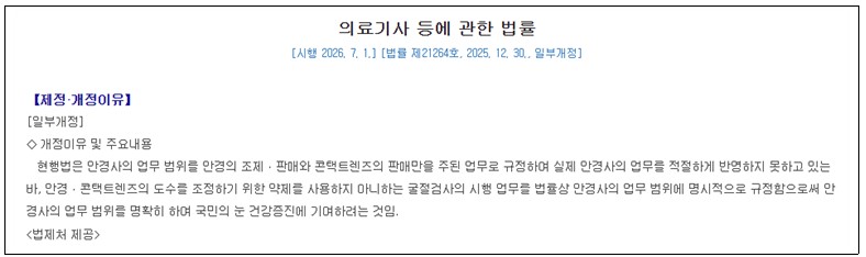 ¡¸ÀÇ·á±â»ç µî¿¡ °üÇÑ ¹ý·ü¡¹ °³Á¤À¸·Î ¾È°æ»çÀÇ ¾÷¹« ¹üÀ§¿¡ ‘¾È°æ·ÄÜÅÃÆ®·»Áî µµ¼ö Á¶Á¤À» À§ÇÑ ¾àÁ¦¸¦ »ç¿ëÇÏÁö ¾Æ´ÏÇÏ´Â ±¼Àý°Ë»çÀÇ ½ÃÇà’ÀÌ ¸í½ÃµÇ¾úÀ¸¸ç, ÇØ´ç ¹ýÀº 2026³â 7¿ù 1ÀϺÎÅÍ ½ÃÇàµË´Ï´Ù.